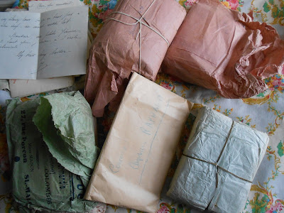 I bought this batch of 1930s/40s letters from a man who had cleared a house. The tied bundle of letters have the year they were sent ( from 1935 to 1940) written on the 'wrapping' paper. All from a Captain in the French army to his wife or sweetheart. I have read just a couple and they are the most wonderful love letters. There are some photographs among the letters too.